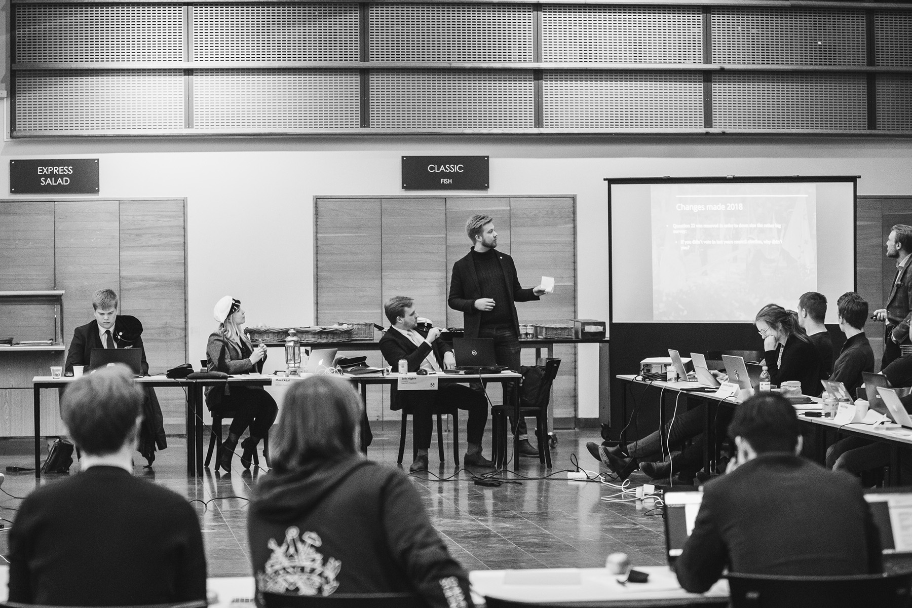 The 35 members decide about the annual budget for the union, strategic matters, constitution, policies and who eventually will lead the daily operations (kårledningen).